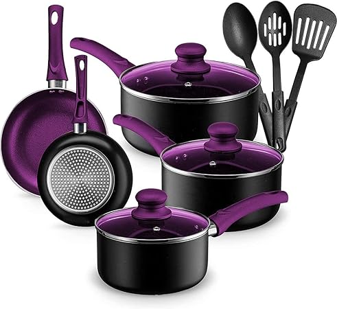 Chef's Star Pots And Pans Set Kitchen Cookware Sets Nonstick Aluminum Cooking Essentials 11 Pieces Purple: specs, price, real-world pros…