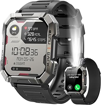 Military Smart Watch for Men (Answer/Make Calls), 2.01'' Smart Watch for Android and iPhone, Fitness Tracker with Flashlight/Compass/100 Days…